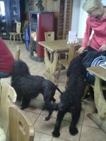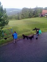 O víkendu nás navštívilo 6 rodin. Spousta lidí, pejsků, dětí...Bylo hodně veselo. Přijeli i Perničtí se 7 měsíčním Dodgem. Ti blbli s Donaldem a Finem venku. Aimeé se moc zapojovat nechtěla....klukama opovrhovala....dáma od malička. A v pokoli kolečko sedících, kde se uprostřed batolila štěňátka. JJ těžký výběr, když jsou všechna stejná...Nakonec měl už ale každý to svoje miminko v náručí a myslím, že si to užívali. Pro mě to byl krásný pocit i pohled. Všem moc děkuji za pěkné dárečky. Miminka vám budu hýčkat jak nejlépe dovedu a věřím, že vám budou těmi nejlepšími kamarády. Hezké dny přeji všem.